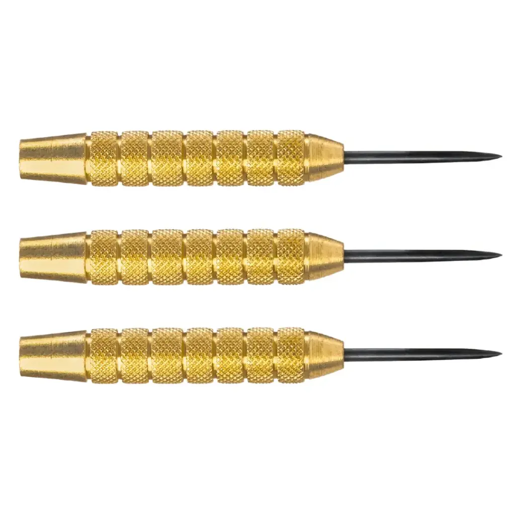 Die neuen Karella Deluxe Barrels verfügen über ein unschlagbares Preis-Leistungs-Verhältnis. Die auffallend attraktiven Barrels haben unterschiedliche Formen, Griparten und Beschichtungen. Dank der perfekten Gewichtsverteilung und präzisen Verarbeitung garantieren die Barrels ein hervorragendes Handling für jeden Wurfstil. Die Barrels sind jeweils in Soft und Steel erhältlich. Die Preise verstehen sich je Set (3 St.). Die Barrels sind auf Anfrage auch lose erhältlich. Der DL-1 ist messingbeschichtet und hat durch seine Riffelungen viel Grip. Gewicht: 22 g Länge: 54 mm Durchmesser Ø: 9,2 mm Barrelform: Zylinderform Grip Level 1-3: 3
